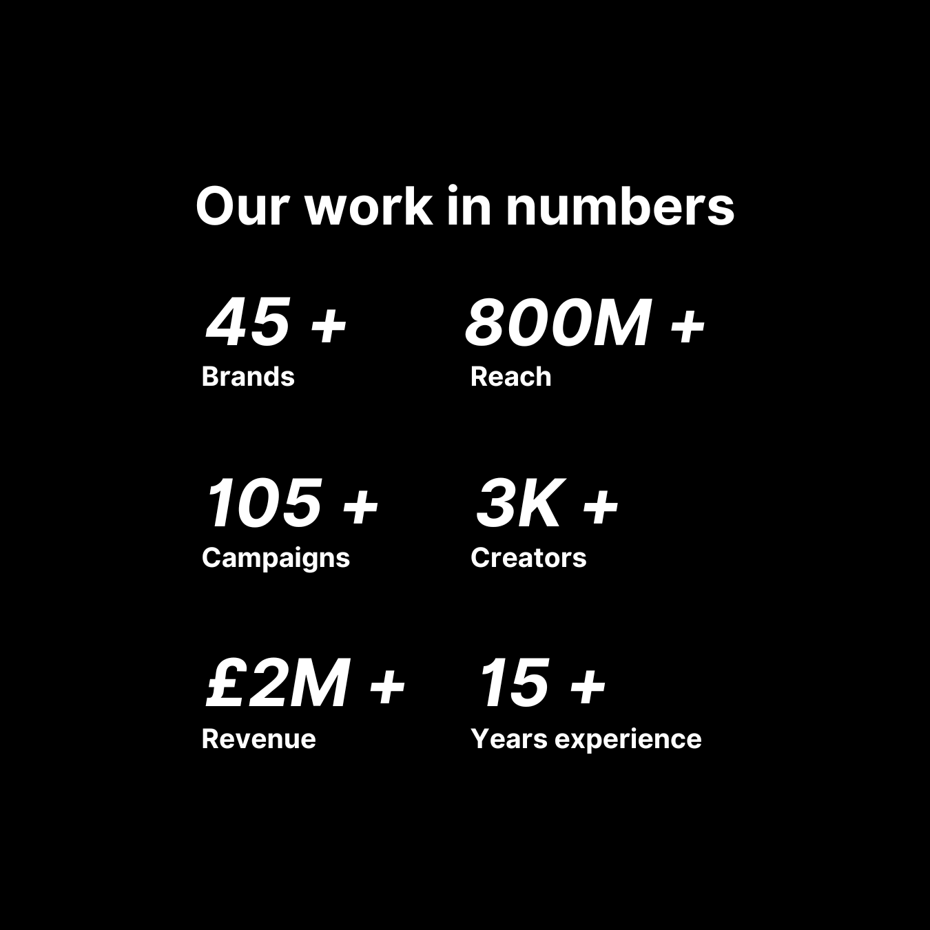 We've managed successful campaigns for top brands like Shokz, Primark, Grenade, Paramount Pictures, and more. Our services include talent identification, fee negotiation, influencer briefs, timely publication, and data tracking. With a proven track record handling budgets from £1,000 to £100,000, we provide a seamless solution for impactful influencer marketing. For a free chat and to elevate your brand awareness, contact us today.